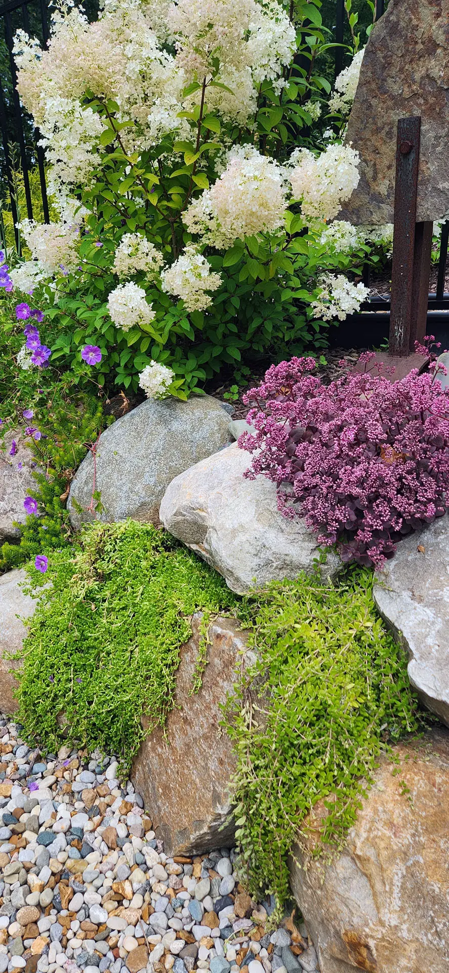 We carefully select and install plants that thrive in Michigan’s climate, balancing seasonal interest with ecological value. From pollinator-friendly perennials and flowering shrubs to native trees and ornamental grasses, we install flora that supports beauty and biodiversity.
