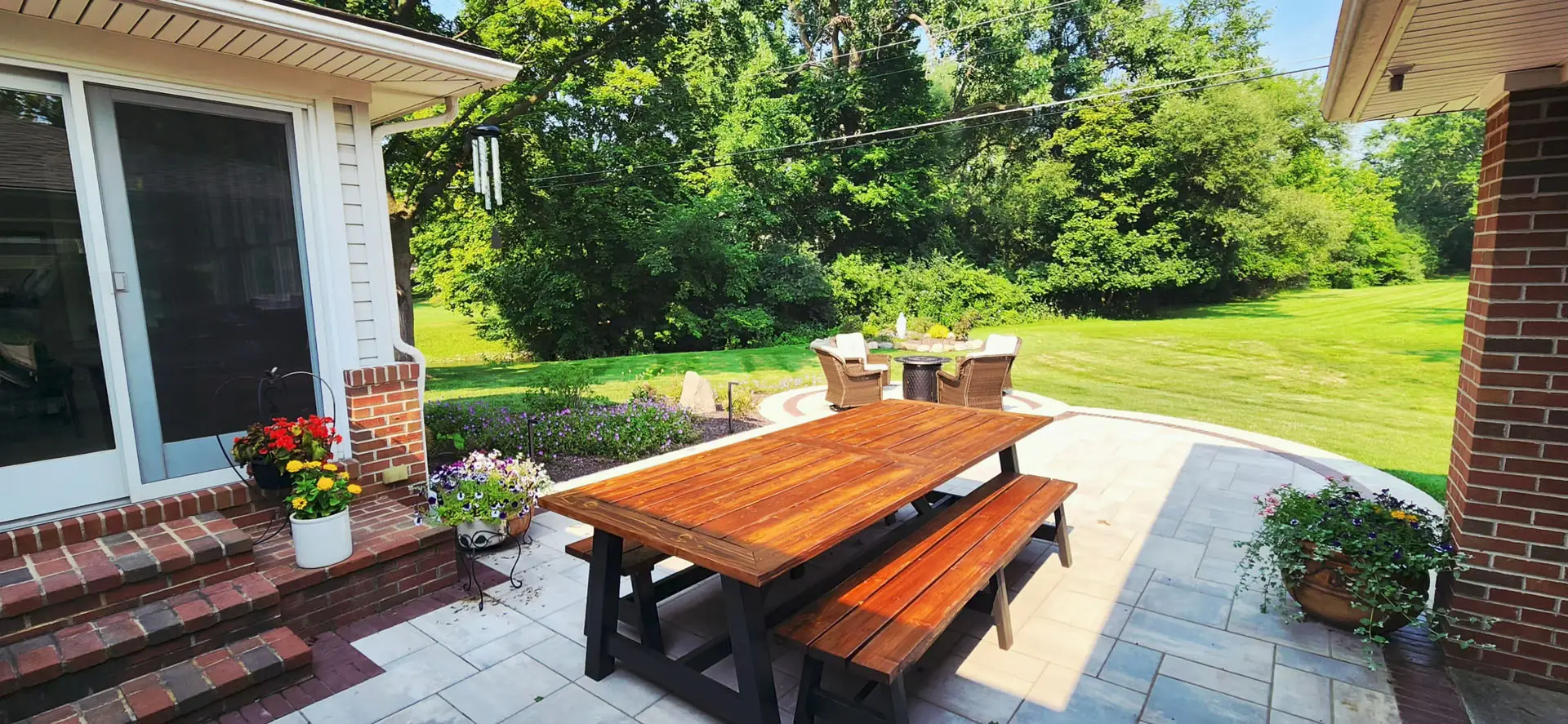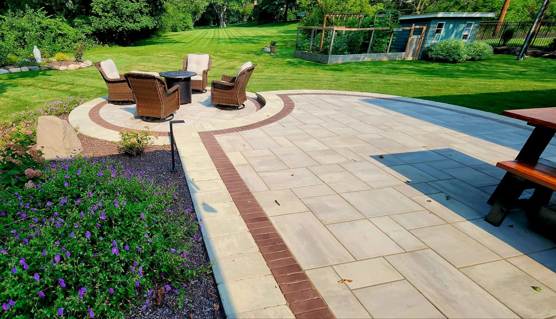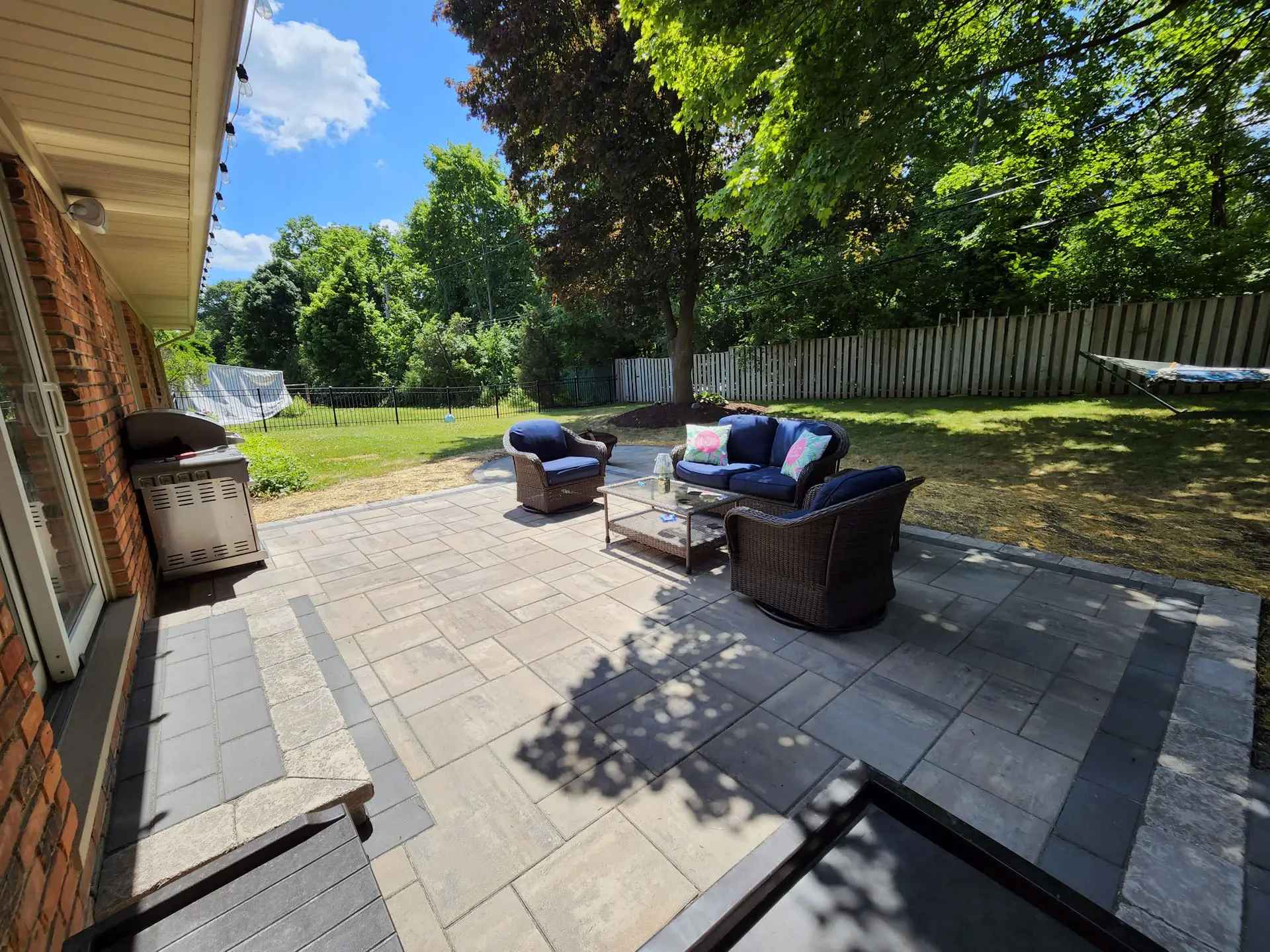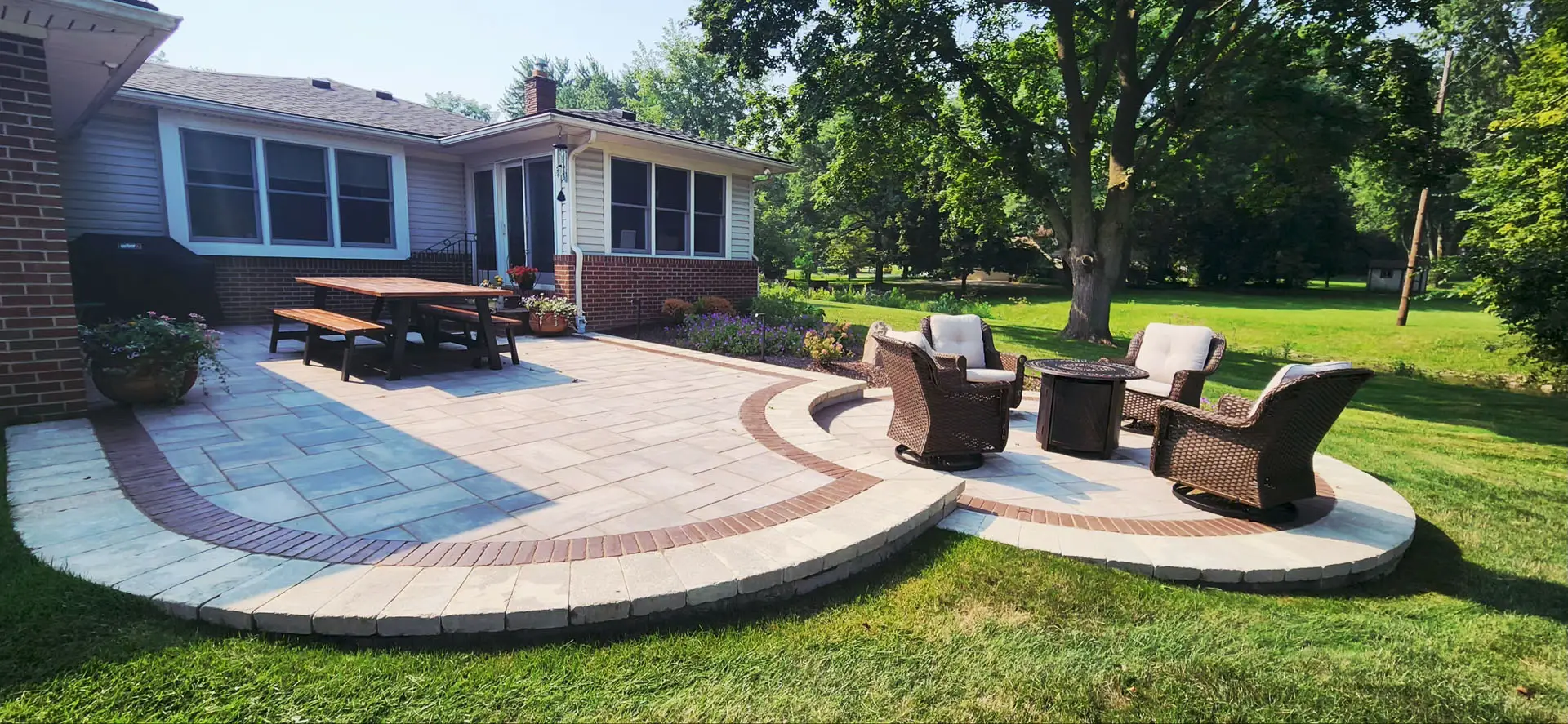 Create a stylish and welcoming space to relax, entertain, and enjoy your backyard. Our custom brick paver patios are designed around your home’s layout, aesthetic, and how you plan to use the space. With a wide range of colors, patterns, and finishes available, we’ll create a patio that feels like a natural extension of your home.