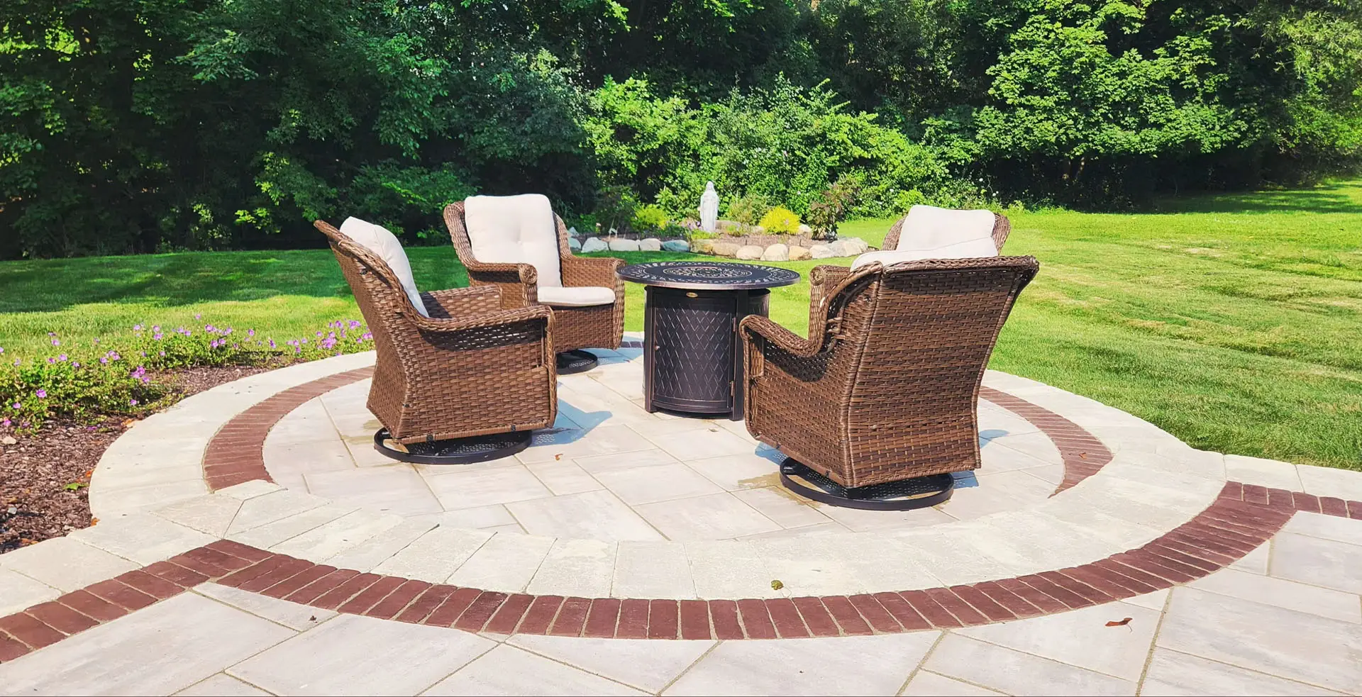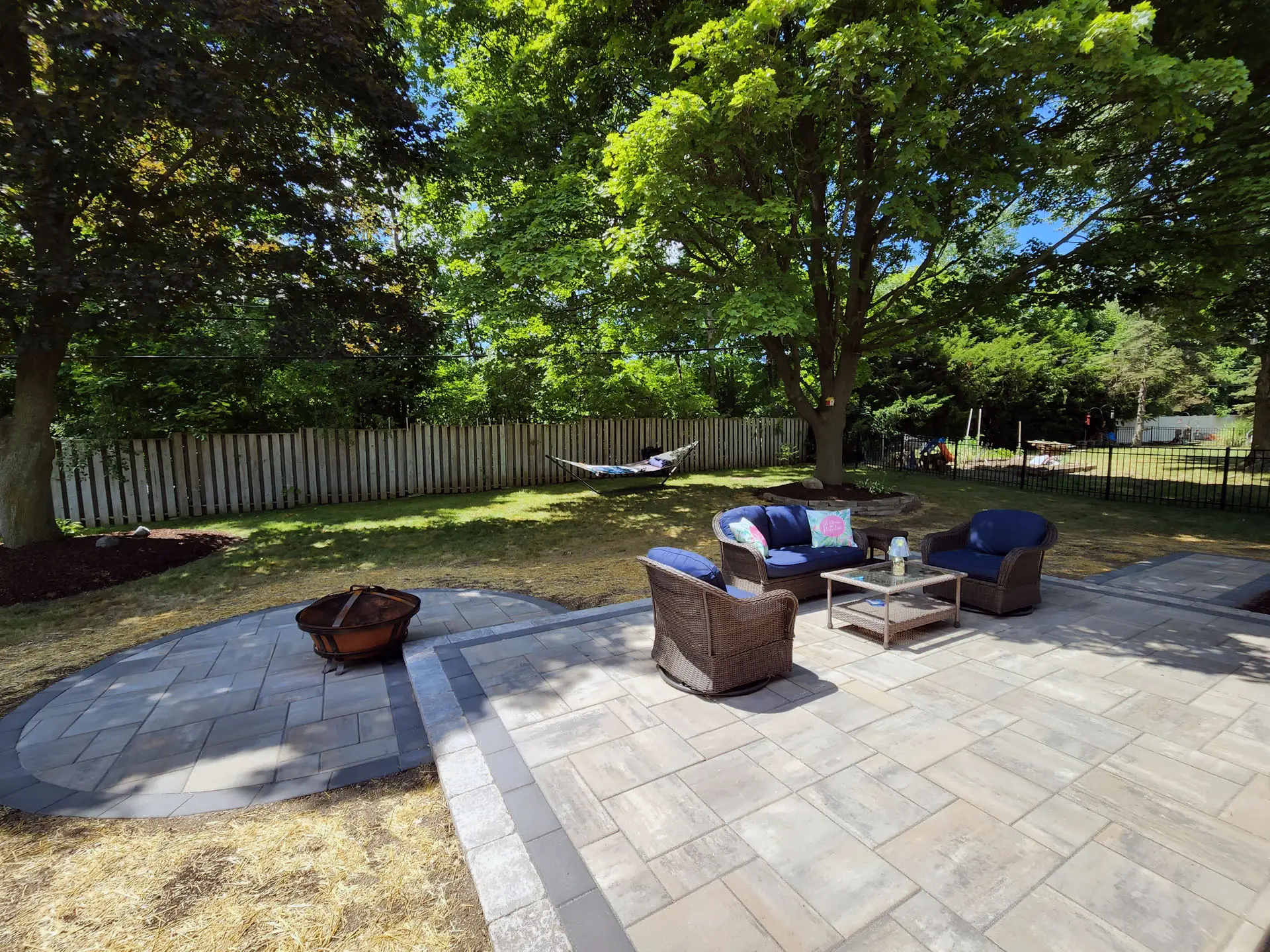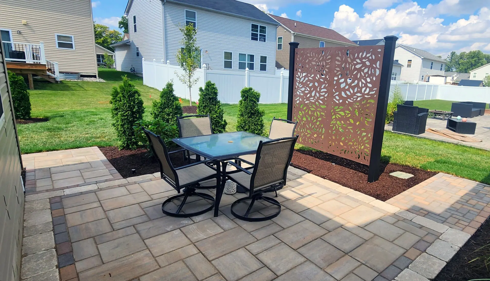 Create a stylish and welcoming space to relax, entertain, and enjoy your backyard. Our custom brick paver patios are designed around your home’s layout, aesthetic, and how you plan to use the space. With a wide range of colors, patterns, and finishes available, we’ll create a patio that feels like a natural extension of your home.
