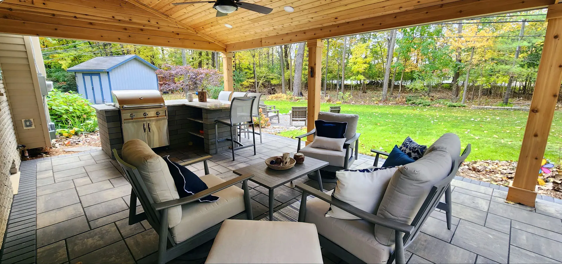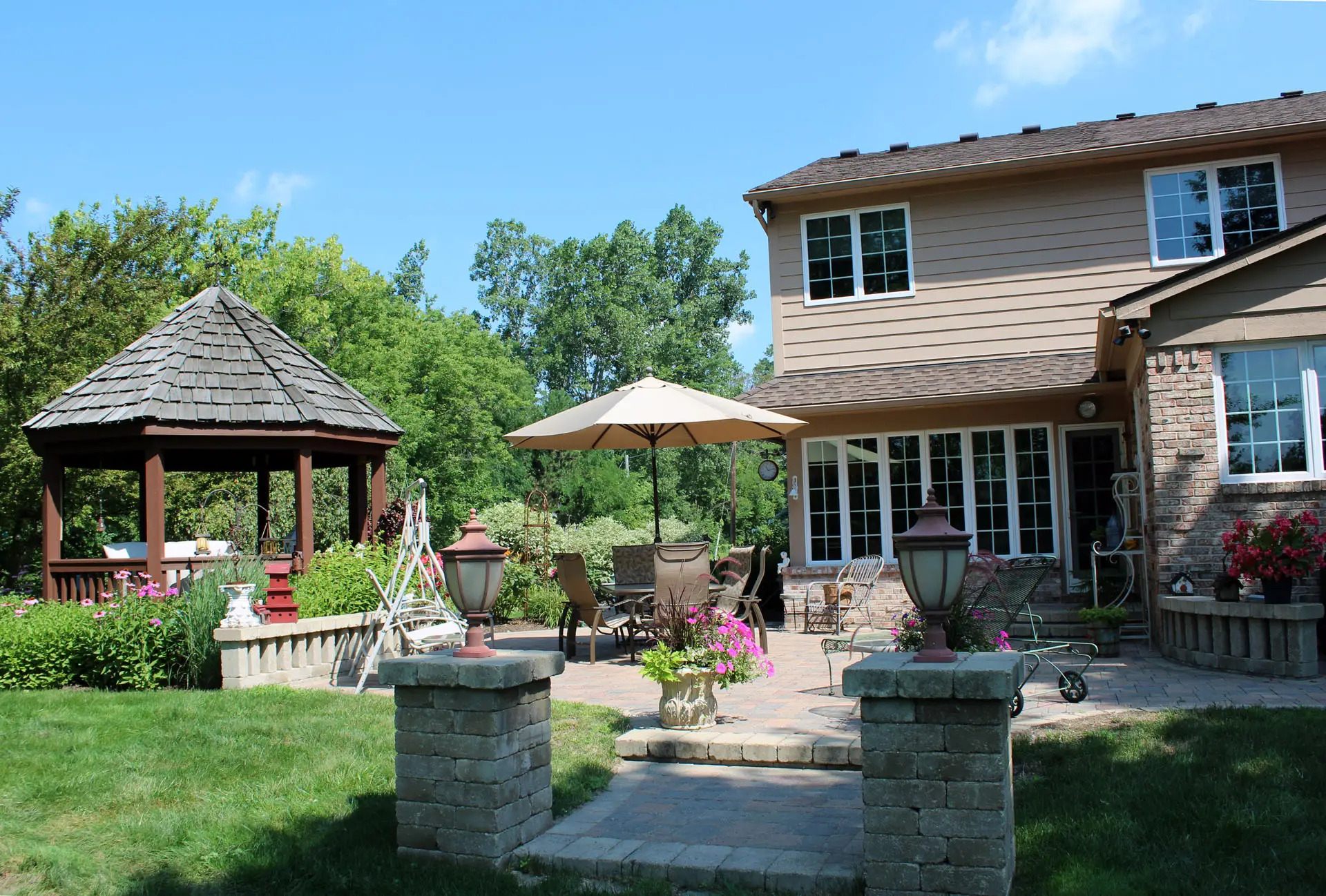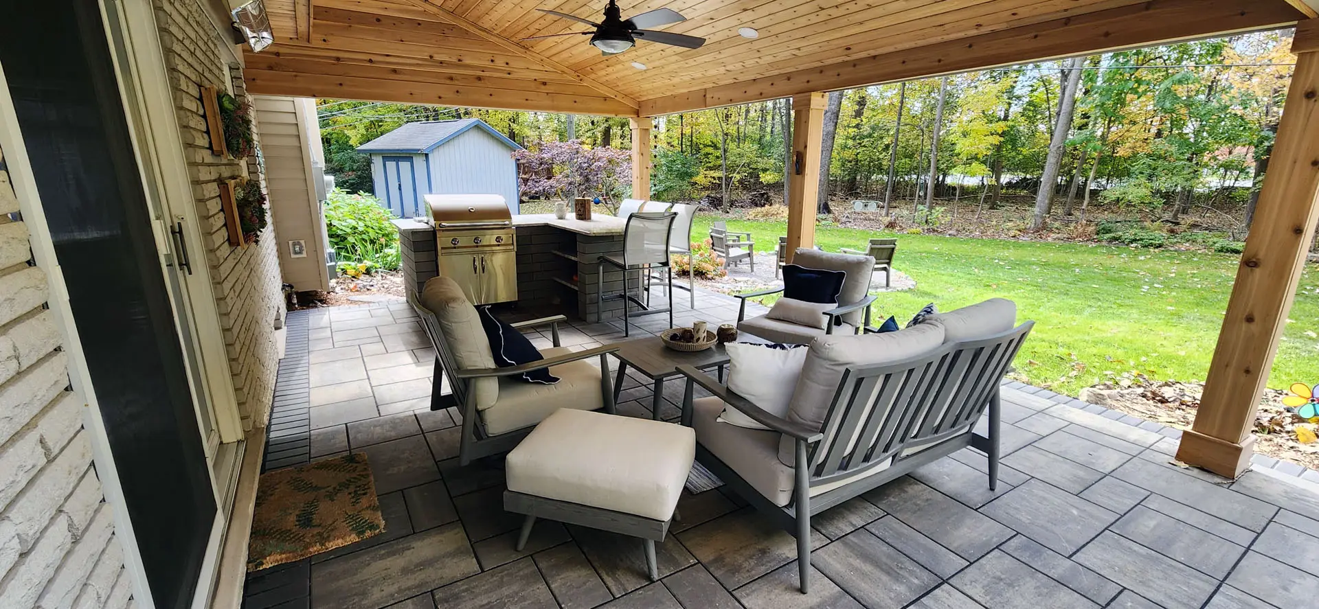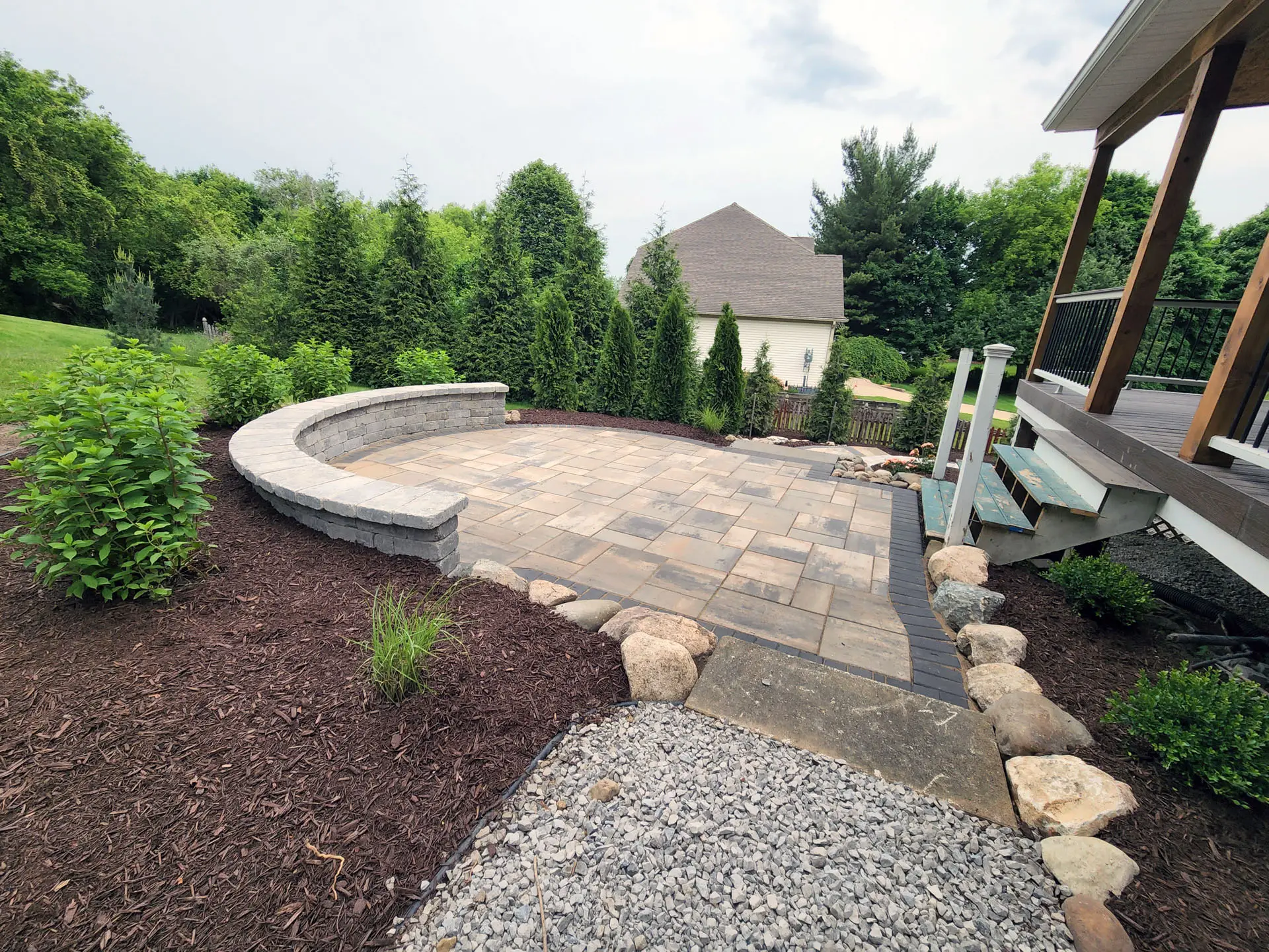 Create a stylish and welcoming space to relax, entertain, and enjoy your backyard. Our custom brick paver patios are designed around your home’s layout, aesthetic, and how you plan to use the space. With a wide range of colors, patterns, and finishes available, we’ll create a patio that feels like a natural extension of your home.