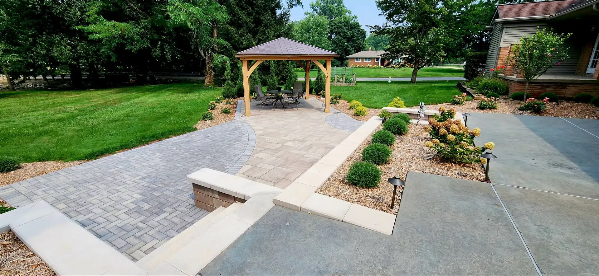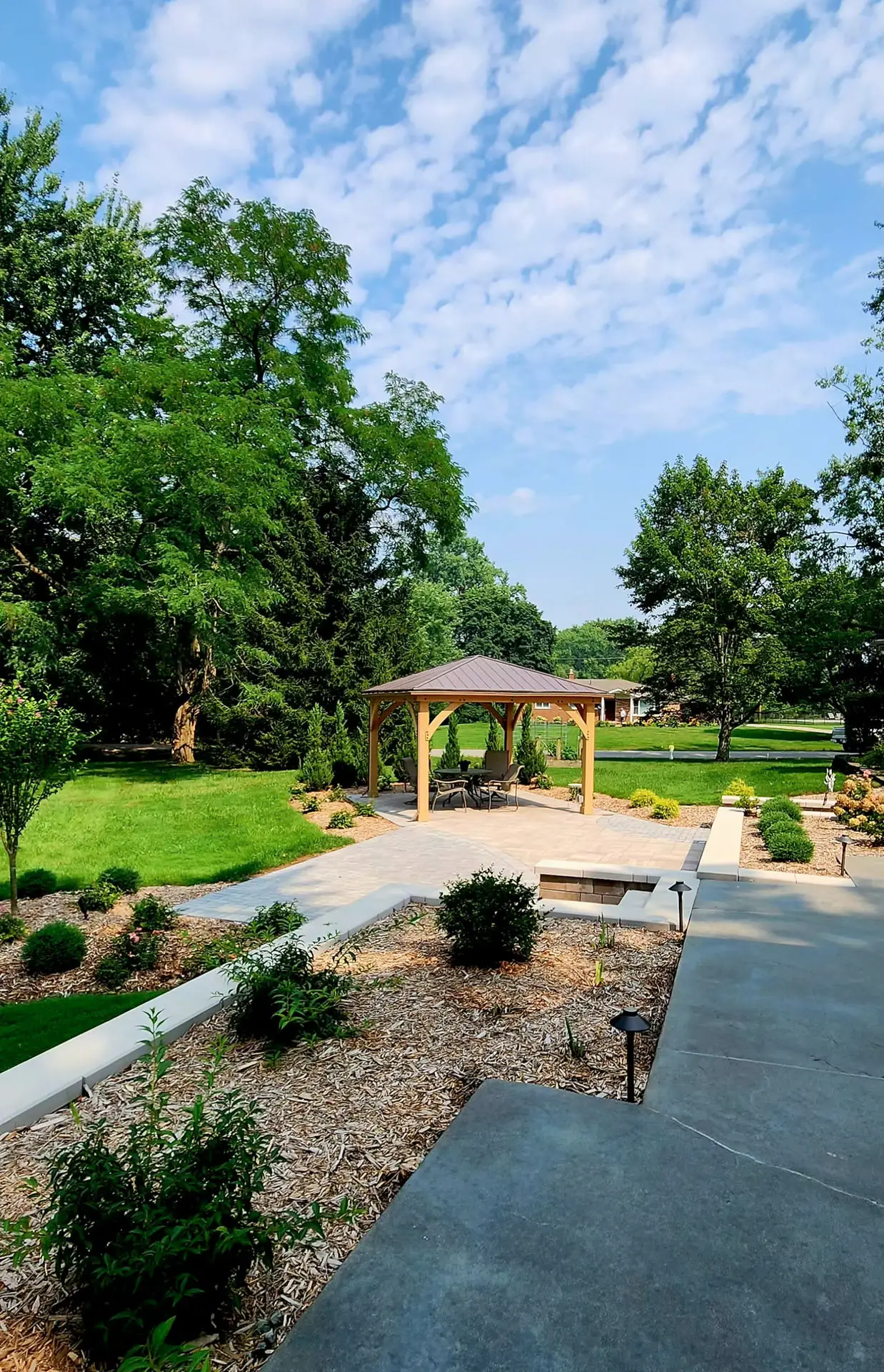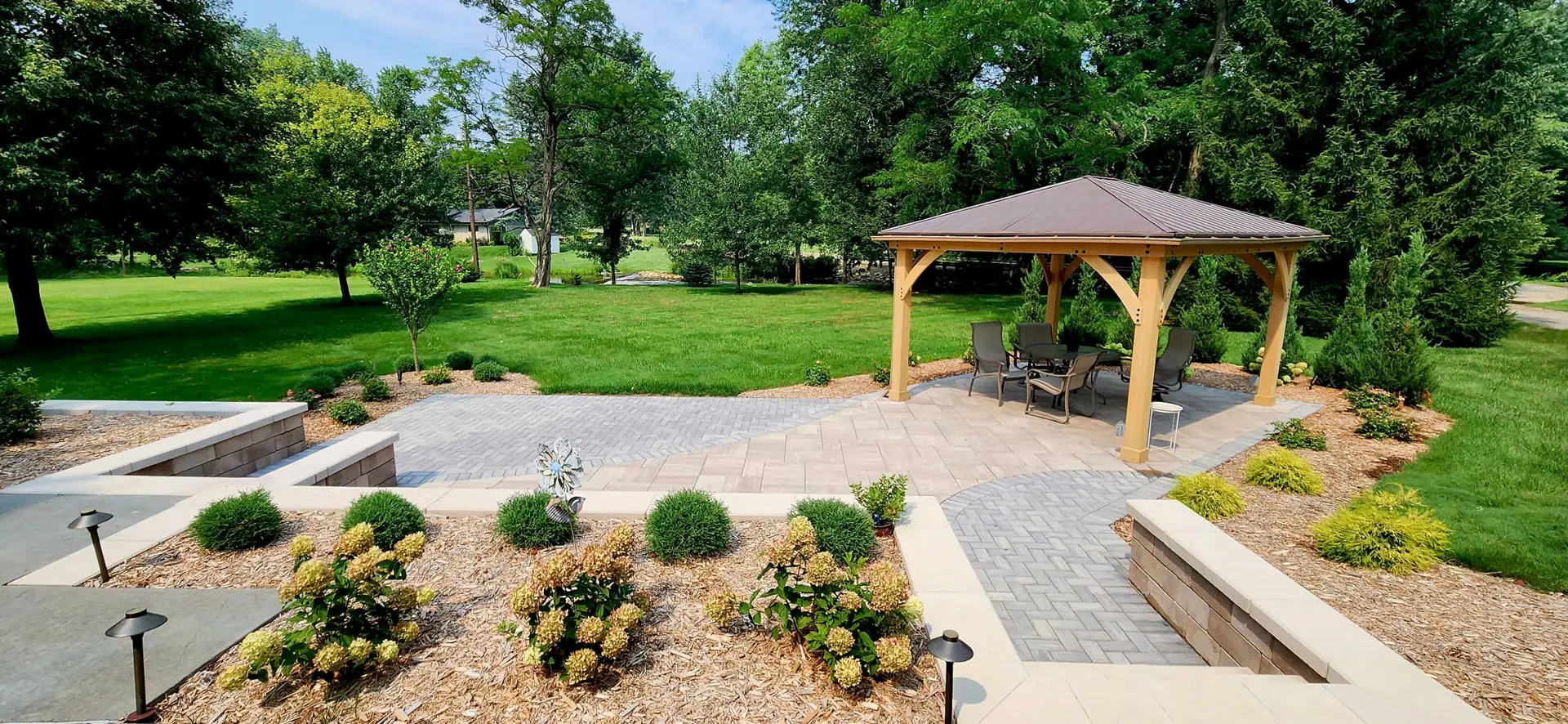 Add structure, style, and shade with a pergola or gazebo. These elements not only provide relief from the sun but also define your space and enhance the overall look and feel of your yard. We offer custom-built options tailored to your space, style, and budget.