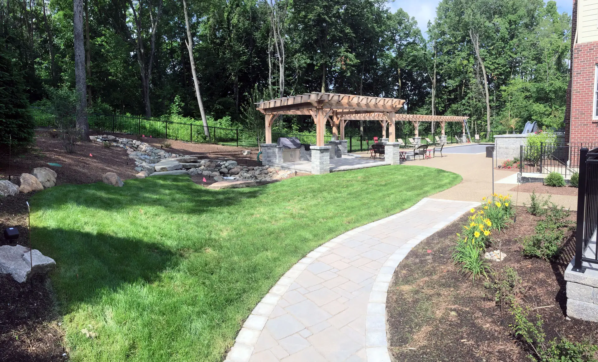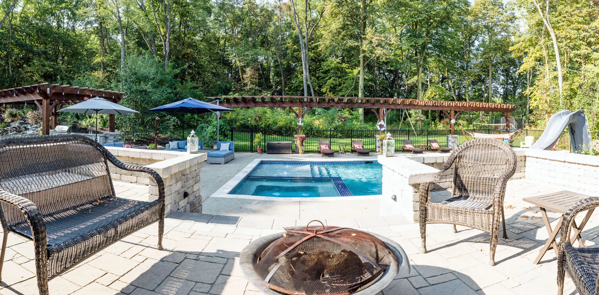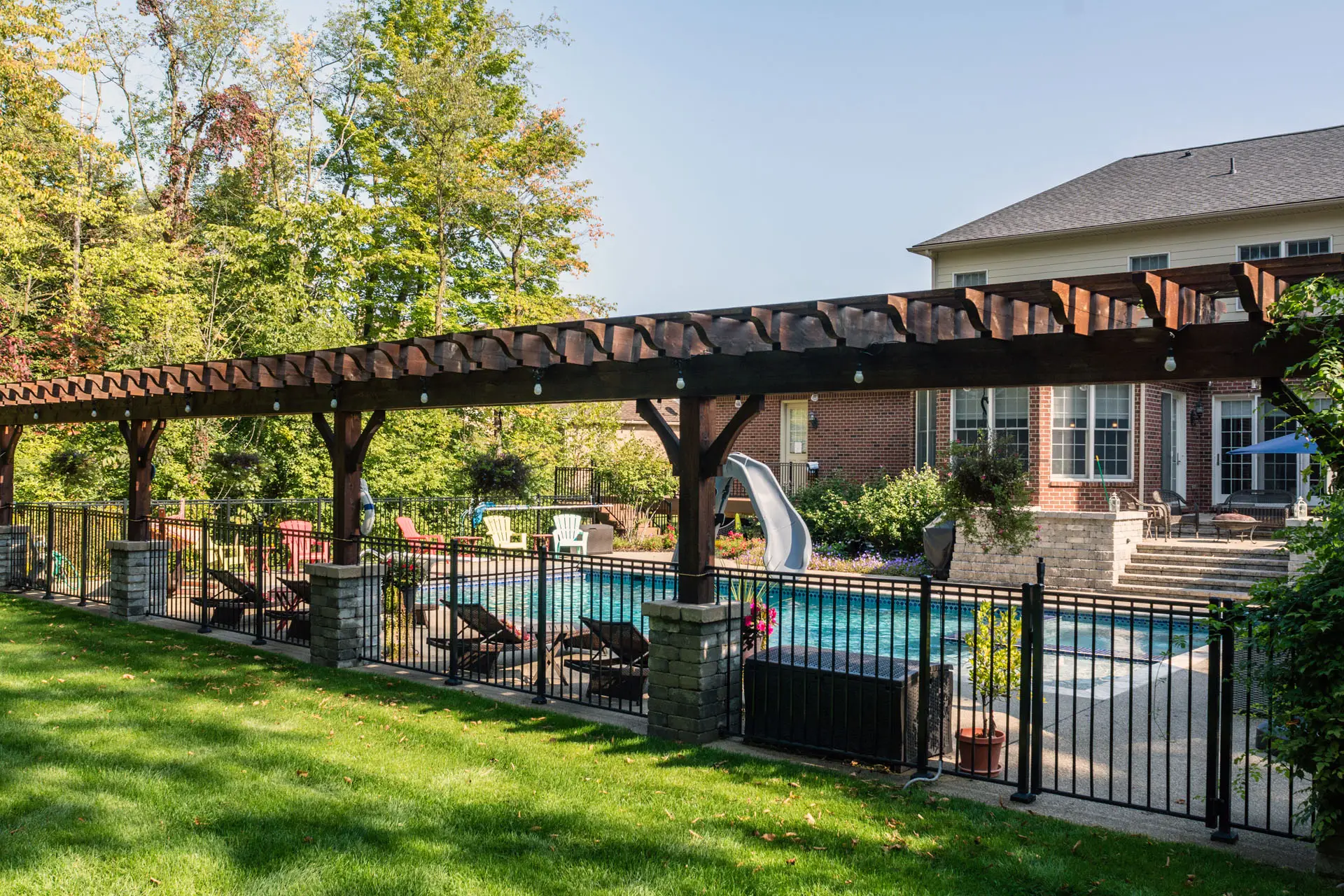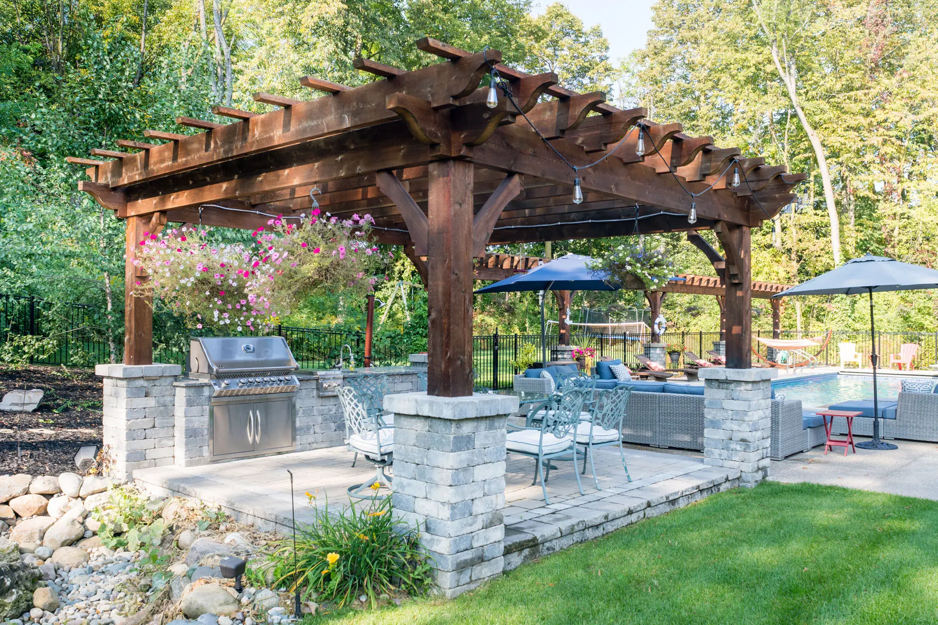 Add structure, style, and shade with a pergola or gazebo. These elements not only provide relief from the sun but also define your space and enhance the overall look and feel of your yard. We offer custom-built options tailored to your space, style, and budget.